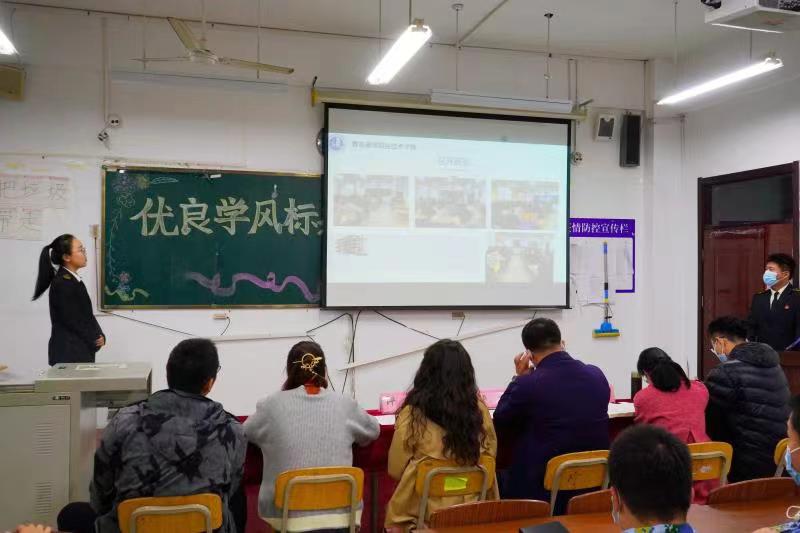 会上,20级各班答辩人员依次上台以PPT的形式进行答辩。答辩同学神采飞扬地展示了各班的优秀表现、优良学风;老师们根据答辩内容提出了一些不足,并进行打分。刘丽表示这次答辩是一次各班交流的机会,各班要积极利用学院资源,针对班级问题进行整改,把功夫放在日常,加强专业学习,促进学风建设。
