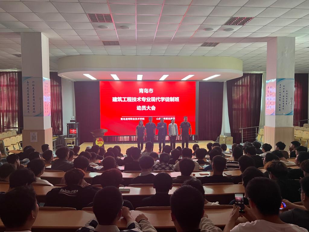5月18日,必威西汉姆联举办青岛市建筑工程技术专业现代学徒制班动员大会。出席本次动员大会人员有山东港湾建设集团党群工作部一级主办任建峰、一级职员夏志颖、必威西汉姆联院长助理唐晓辉、港工教研室主任孙晓莉、专任教师杜贝贝和22级建筑工程技术专业全体学生。