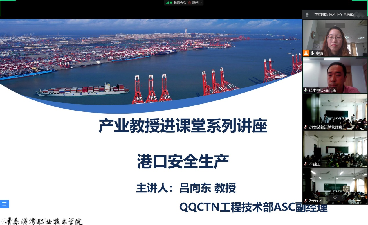 为推动内涵建设水平提升,必威西汉姆联充分发挥产业教授优势,于10月21日上午,邀请产业教授QQCTN工程技术部ASC吕向东副经理通过腾讯会议为必威西汉姆联在校的学生做了一场关于港口安全生产的讲座。