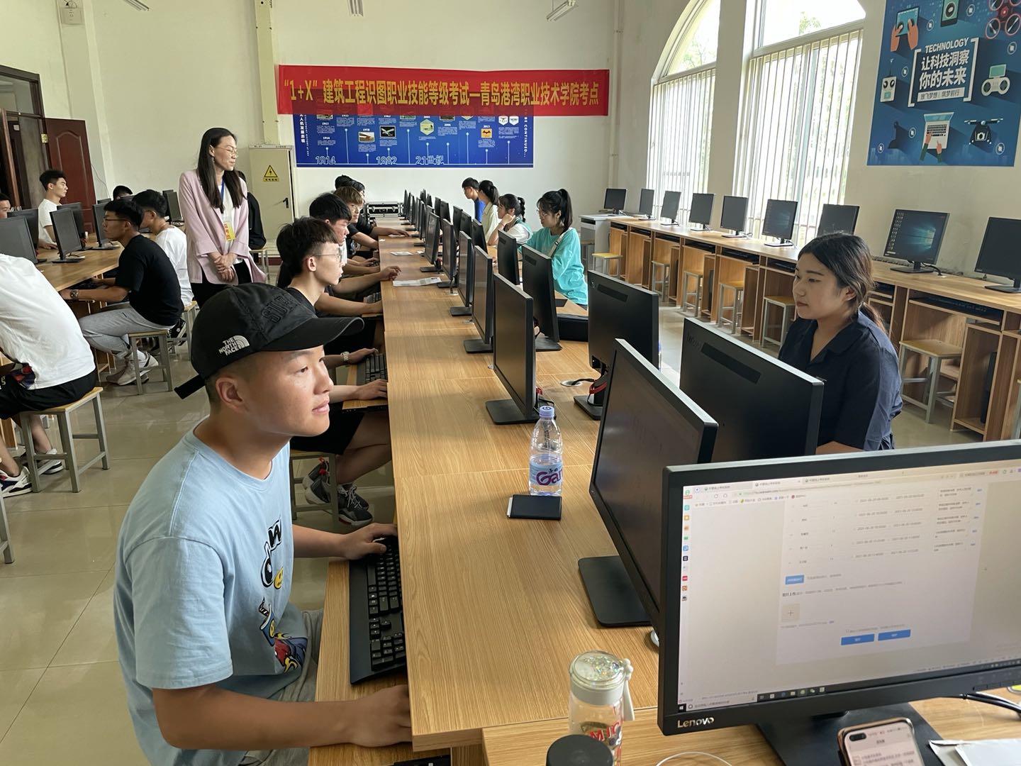 考试采用机考+实操的形式进行,考试内容分为识图和绘图两个部分,其中识图为理论测试,绘图为实操测试,共有来自建筑工程技术专业的34名学生参加考试,本次考试为我院2021年的首次“1+X”建筑工程识图技能等级证书考试。