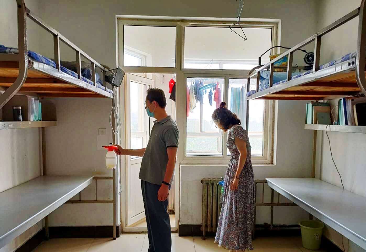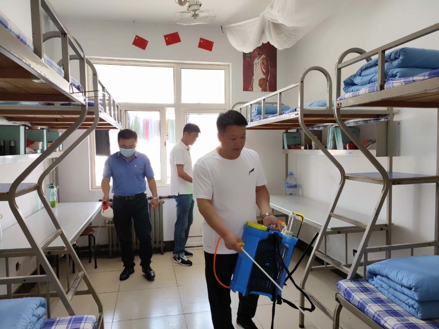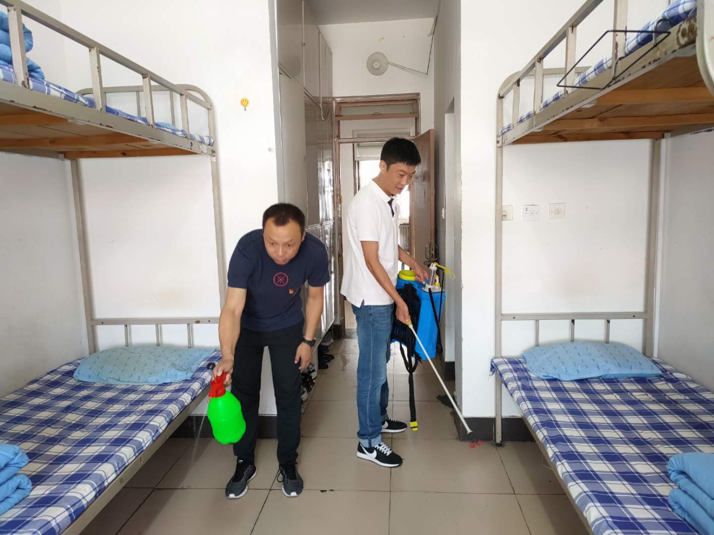 在支部副书记刘丽的带领下,党员以及积极分子背起喷壶,严格按照药剂配比和消毒流程,对楼梯、走廊、宿舍进行了系统清洁,大家各尽所能,协同推进,有条不紊,充分发扬了“不怕脏、不怕累”的吃苦精神和“齐心协力、通力合作”的团队精神。通过两个小时的忙碌,宿舍变得整洁明亮。