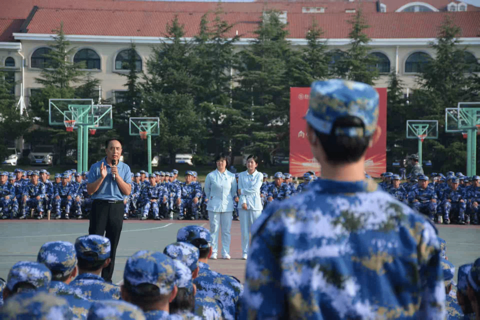 9月9日,智慧必威西汉姆联在篮球场开展急救知识与技能培训活动,学院党总支副书记宋月强、团总支书记卢星宇、全体辅导员出席,青岛滨海学院附属医院急诊科张成峰主任、运营部主任郑勇、护士长李秀英等医护人员主讲,学院全体2025级新生参与。
