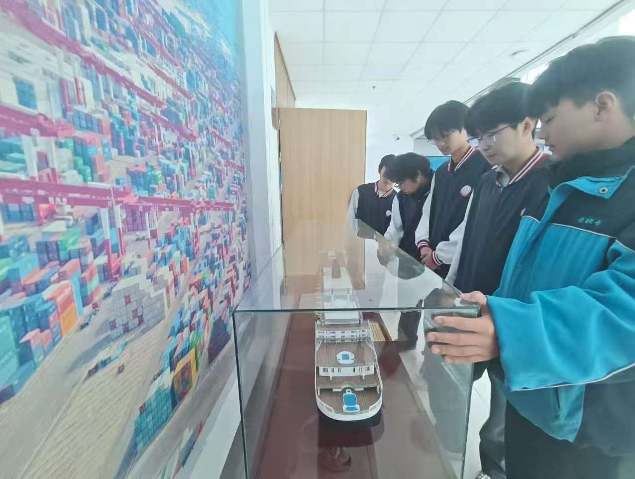 活动中,学院总联络人卢星宇与志愿者团队热情接待并介绍流程、安全事项;在航海职业文化体验馆,学生讲解员讲解航海成就、海事法规及船员职业发展,帮助同学们系统认知航海事业。智慧航海实训中心里,师生分组体验船舶操纵模拟器、自动化码头VR船舶AR拆装项目,前沿科技与航海实践的融合让大家直呼“身临其境”;交流分享环节,远洋资历教师和优秀毕业生分享职业感悟、解答中高职学习发展疑问,为中职学子搭建起中高职衔接路径。活动尾声,双方互赠纪念礼品并合影,学院代表寄语同学们深耕专业、助力海洋事业。