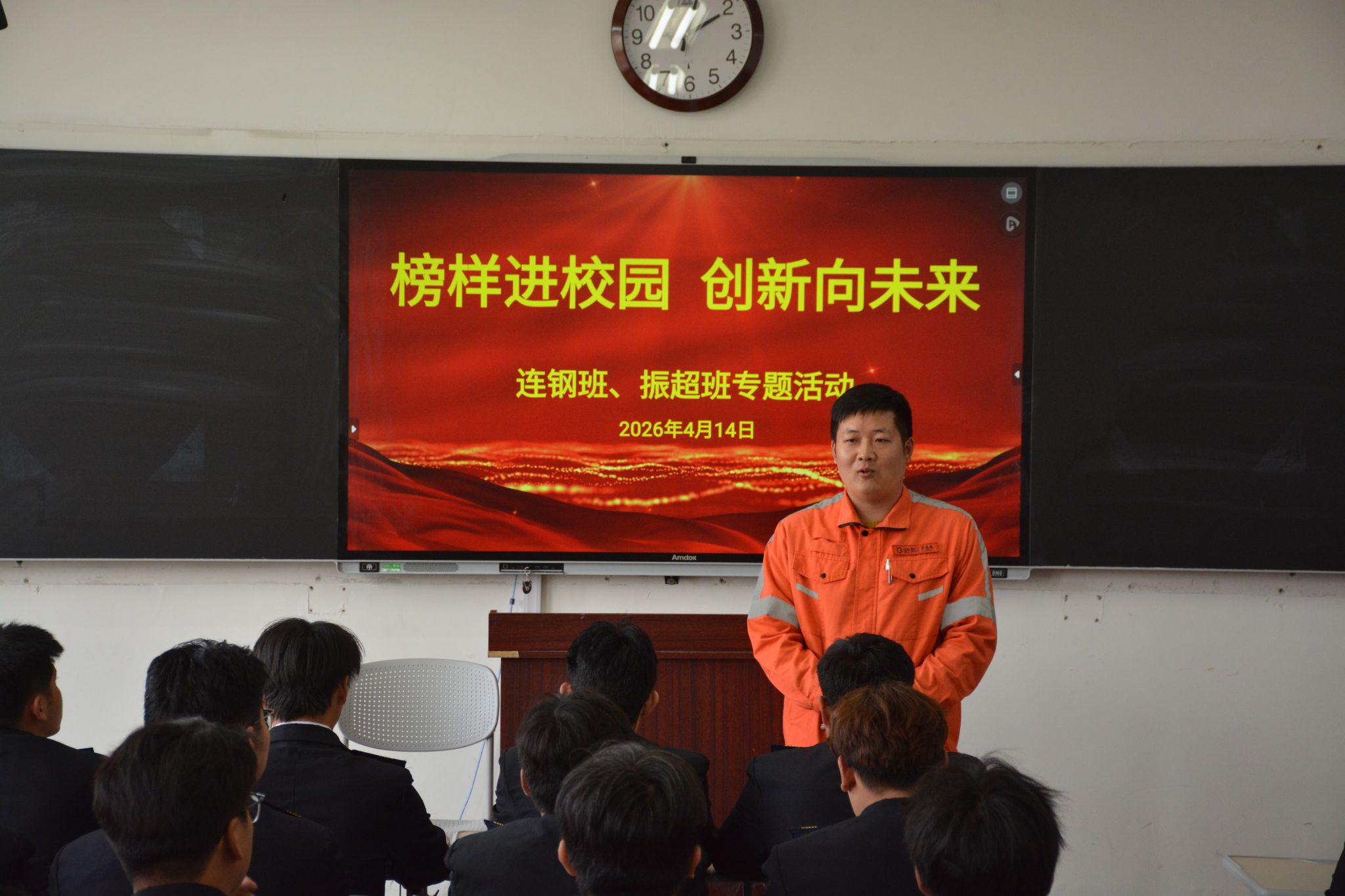 为弘扬劳模精神与工匠精神,推动产教深度融合,提升特色班级学生的专业实践能力,4月14日,智慧必威西汉姆联在A2-408教室举办电气技术专题分享会。董家口矿石码头电气主管李超应邀担任主讲,刘希村出席并讲话,“连钢创新班”与“振超工匠班”全体学生参加讲座。